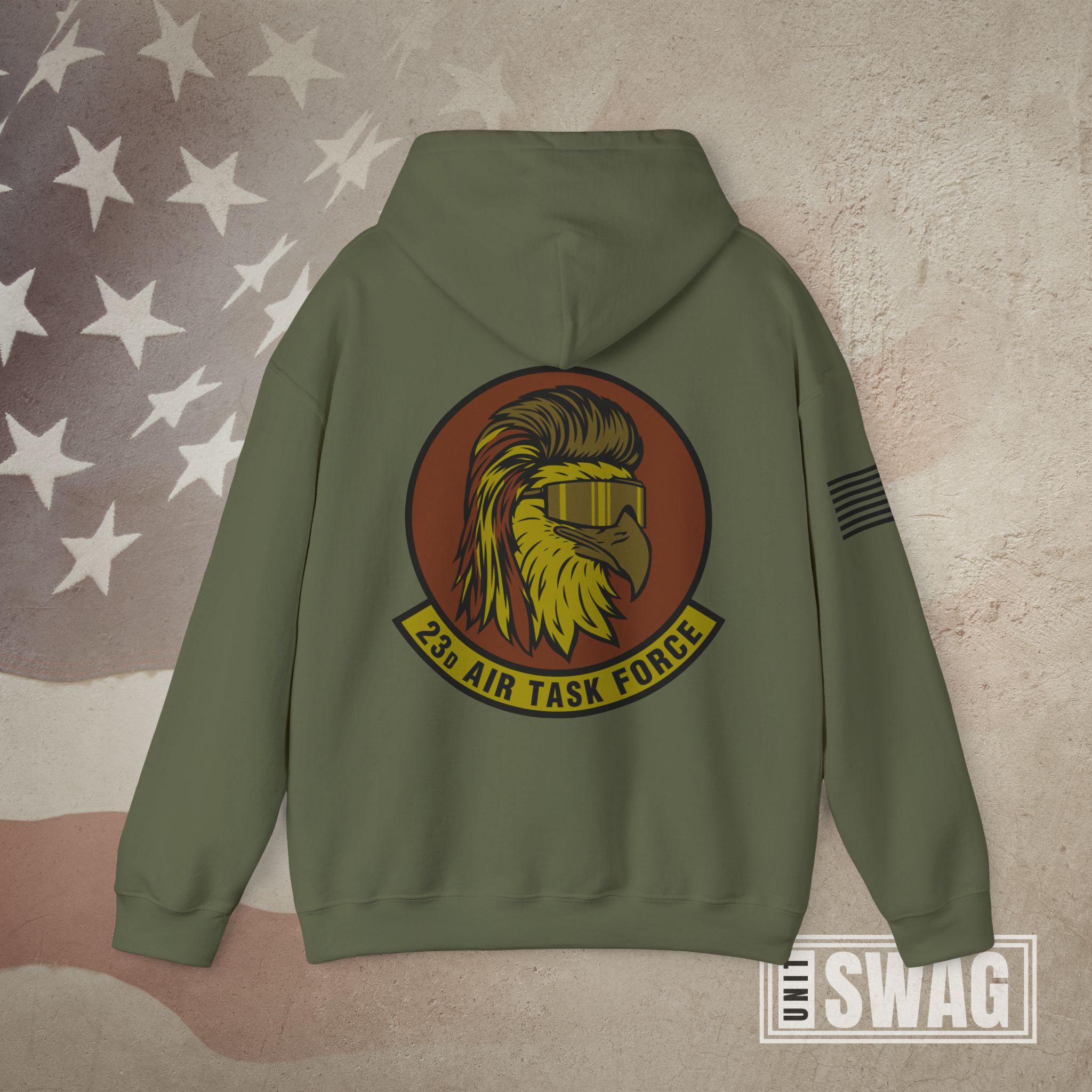 Represent the pride and power of the US Air Force 23rd Air Task Force with this premium unit hoodie, designed as the perfect piece of swag for airmen, veterans, and supportive families. Featuring the official unit emblem and the proud motto We Will Prevail, this hoodie stands as a symbol of strength, resilience, and mission-focused excellence. Whether you're active-duty, retired, or a family member honoring your airman's service, this hoodie offers comfort, durability, and meaning. Ideal for unit reunions, retirements, Veterans Day, birthdays, or simply showing off your 23rd Air Task Force pride, it’s a must-have for anyone connected to this elite team. Stay warm, stay proud, and carry the spirit of We Will Prevail wherever you go.