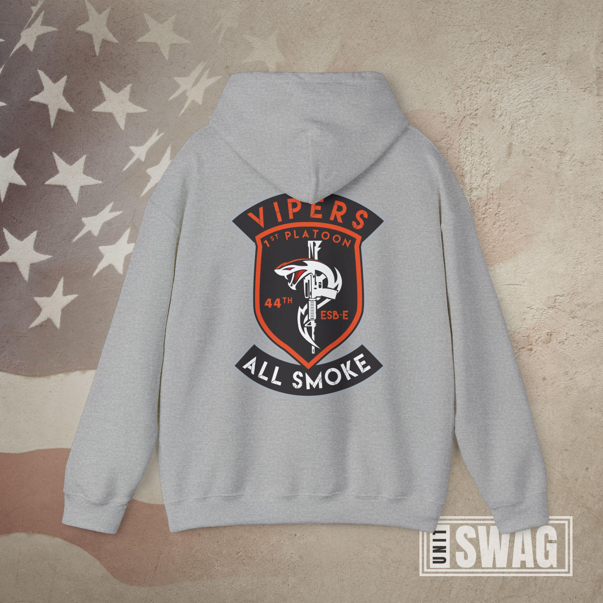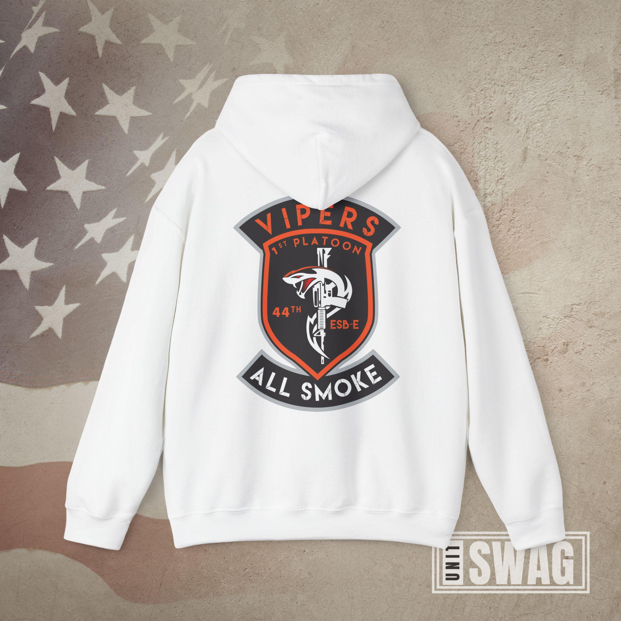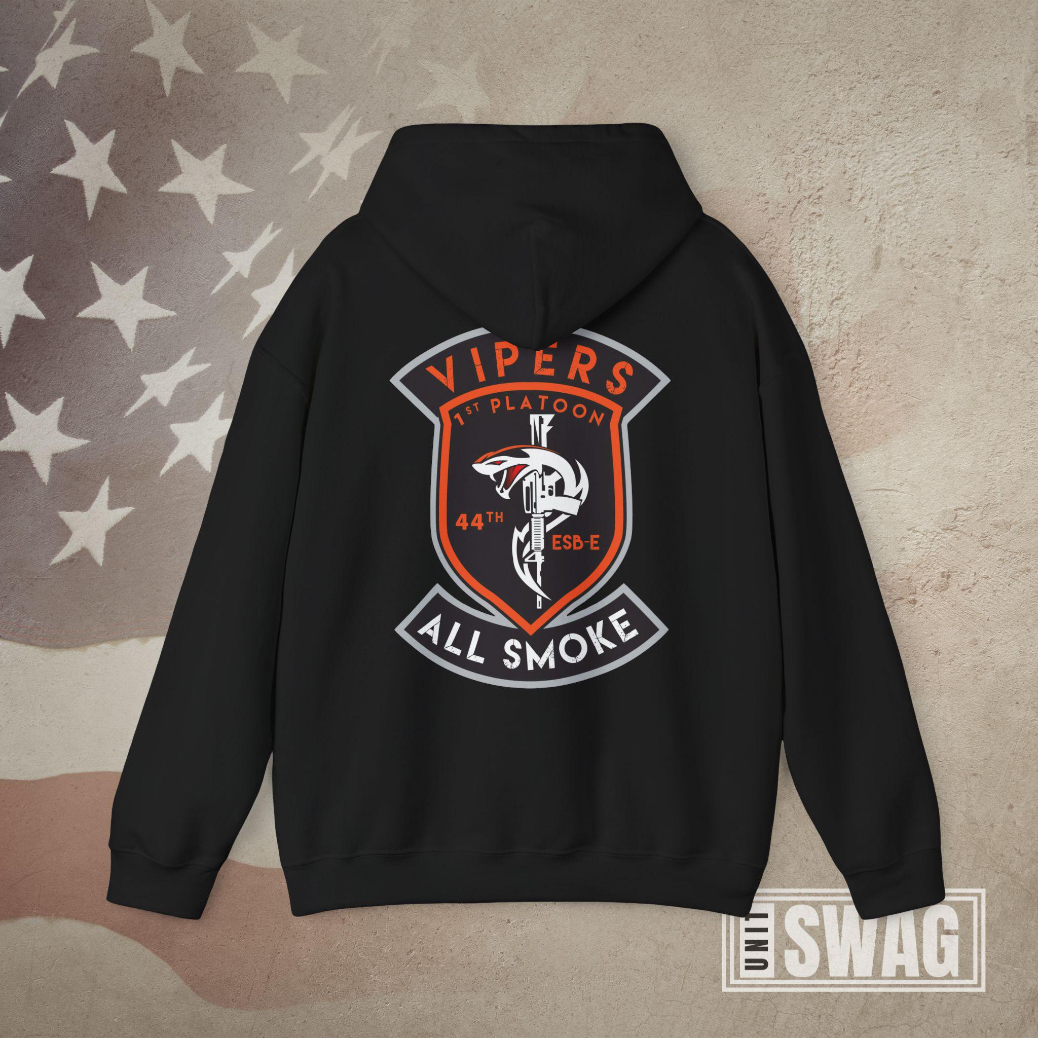 Represent the signal strength and venom of the Vipers with this US Army 1st Platoon, 44th Expeditionary Signal Battalion - Enhanced (ESB-E) hoodie, designed for both comfort and pride. Featuring a bold graphic that honors the cutting-edge communications mission of the 44th ESB-E, this hoodie is perfect for active duty soldiers, proud veterans, and supportive family members. Whether you're stationed overseas, back home, or remembering your time in the unit, it’s a great gift for Veterans Day, birthdays, deployments, promotions, or retirements. Stay warm while showing off your connection to one of the Army’s elite signal platoons with this tribute to the Vipers' legacy and mission readiness.
