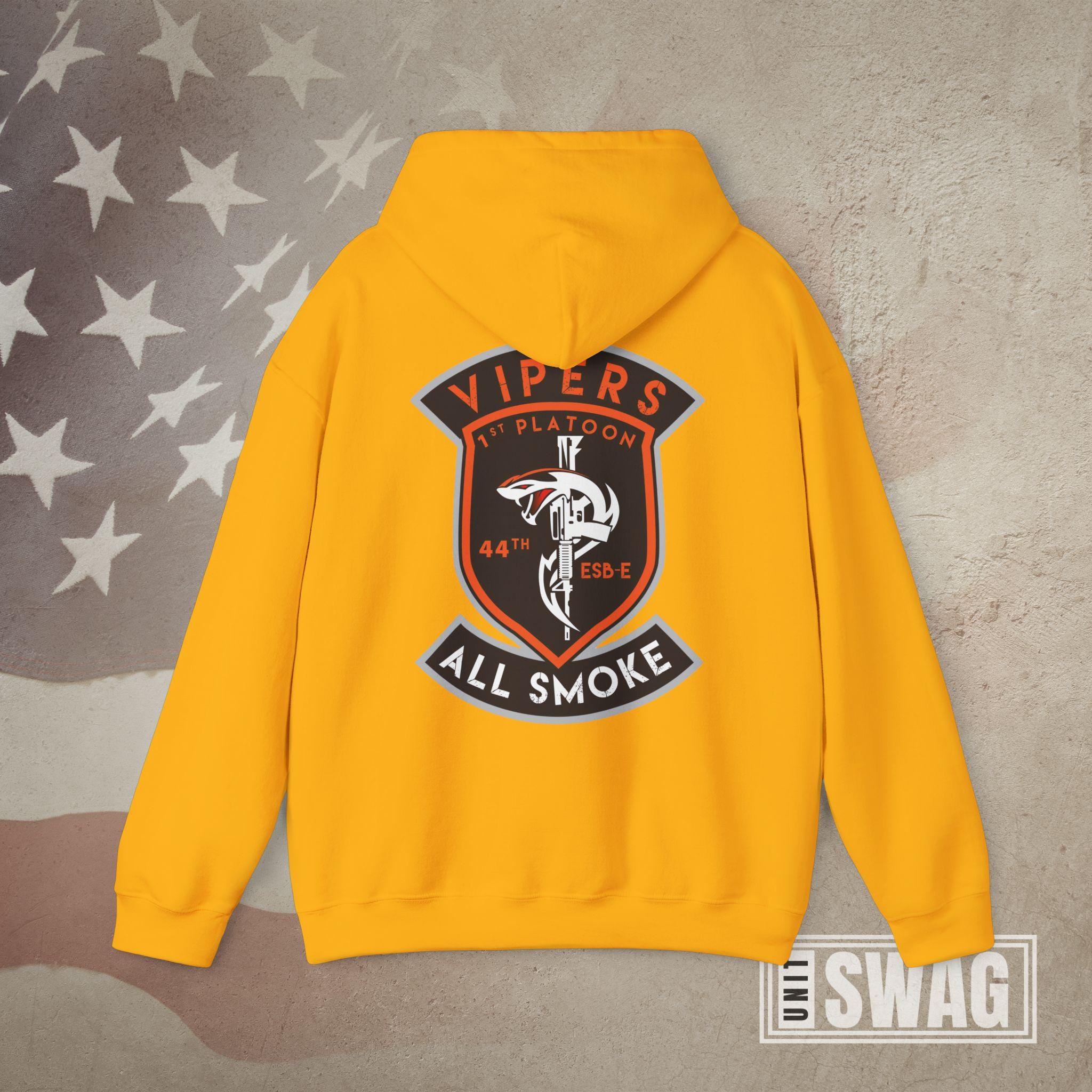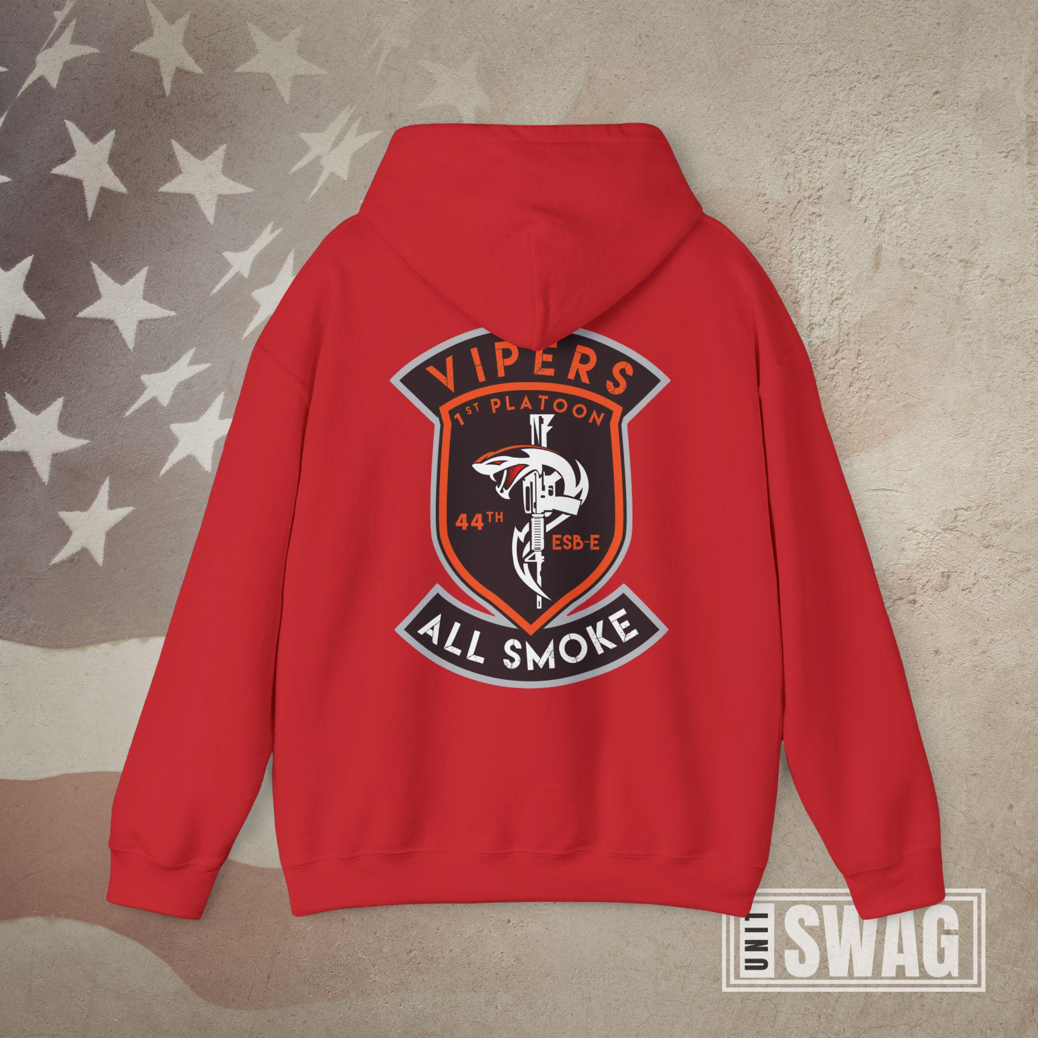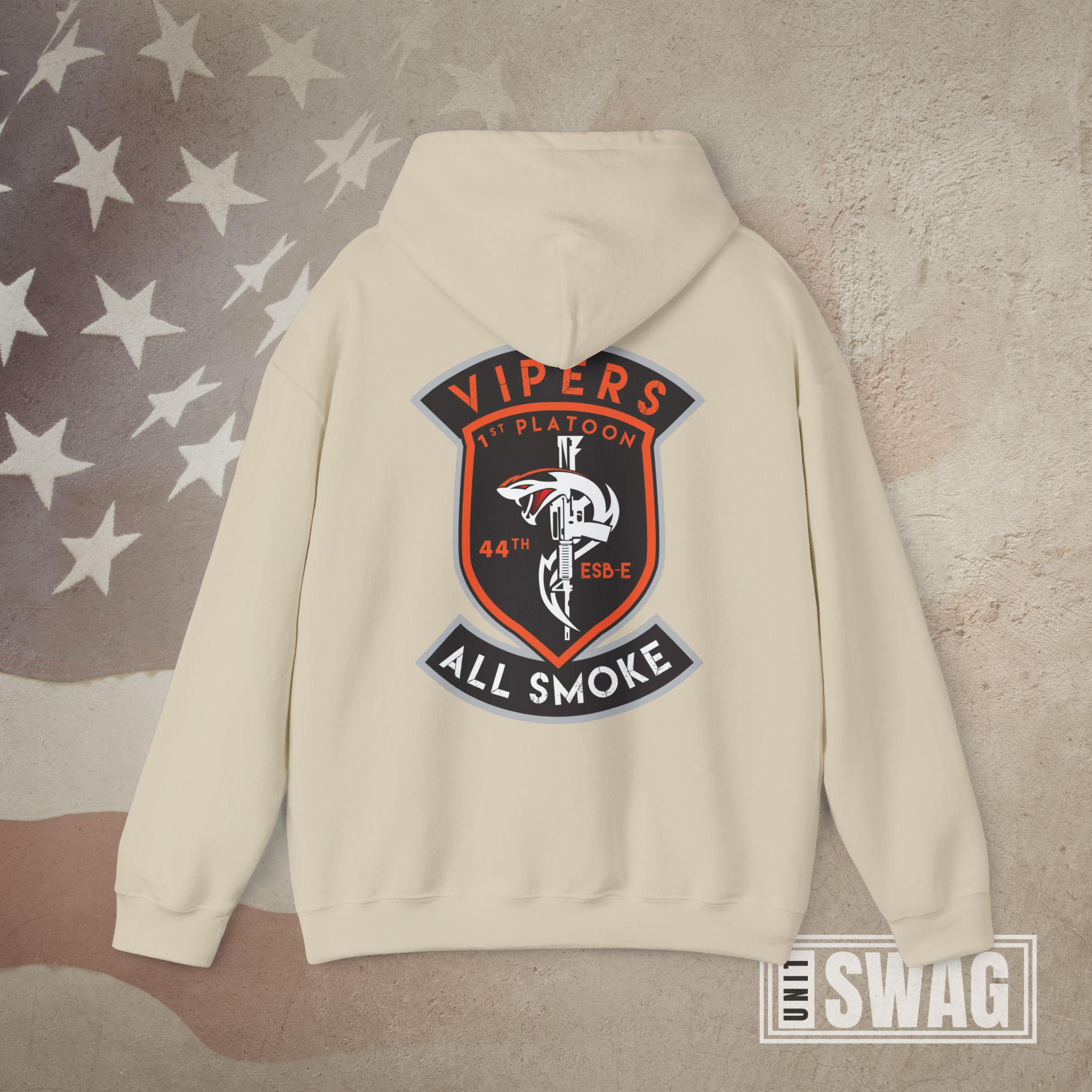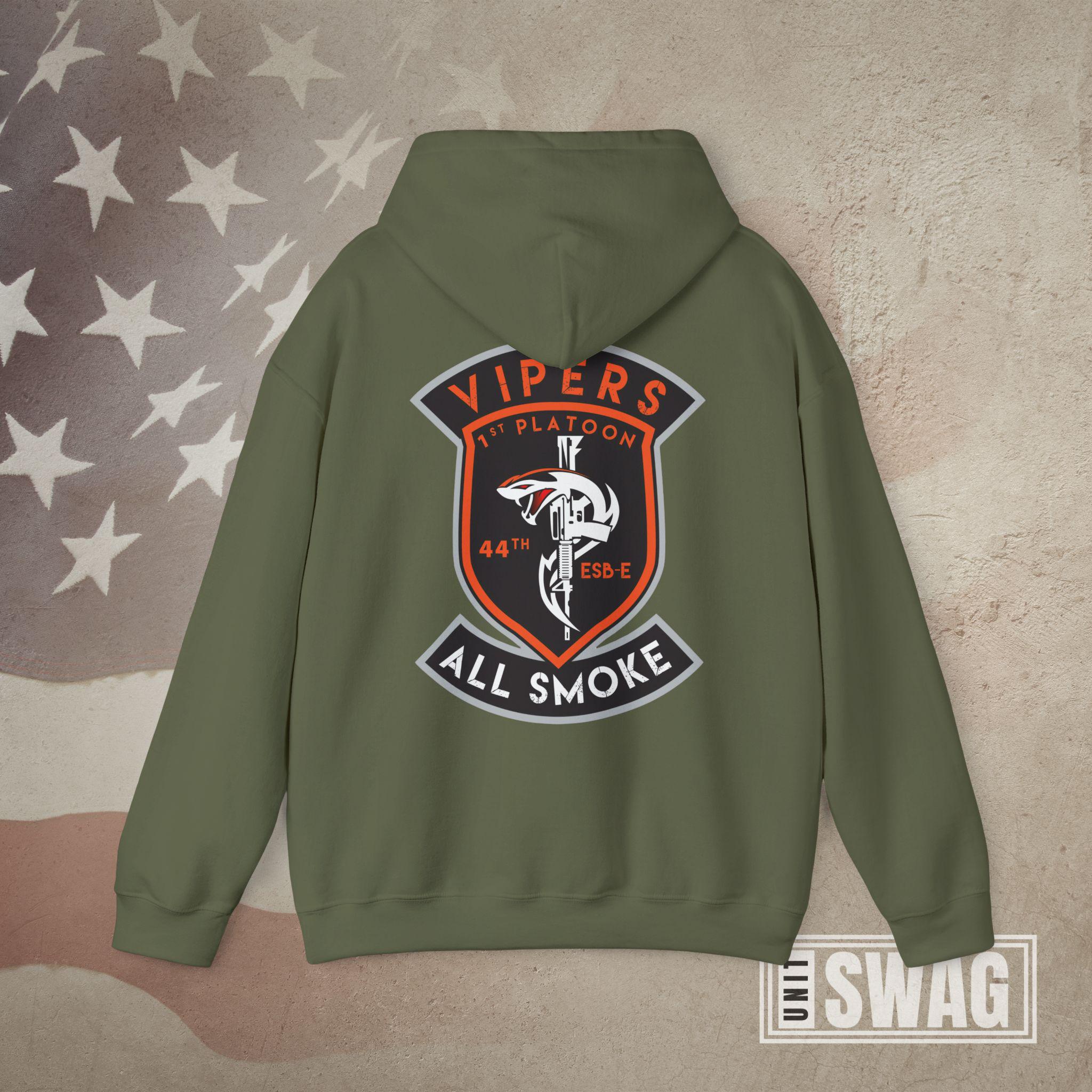Represent the signal strength and venom of the Vipers with this US Army 1st Platoon, 44th Expeditionary Signal Battalion - Enhanced (ESB-E) hoodie, designed for both comfort and pride. Featuring a bold graphic that honors the cutting-edge communications mission of the 44th ESB-E, this hoodie is perfect for active duty soldiers, proud veterans, and supportive family members. Whether you're stationed overseas, back home, or remembering your time in the unit, it’s a great gift for Veterans Day, birthdays, deployments, promotions, or retirements. Stay warm while showing off your connection to one of the Army’s elite signal platoons with this tribute to the Vipers' legacy and mission readiness.